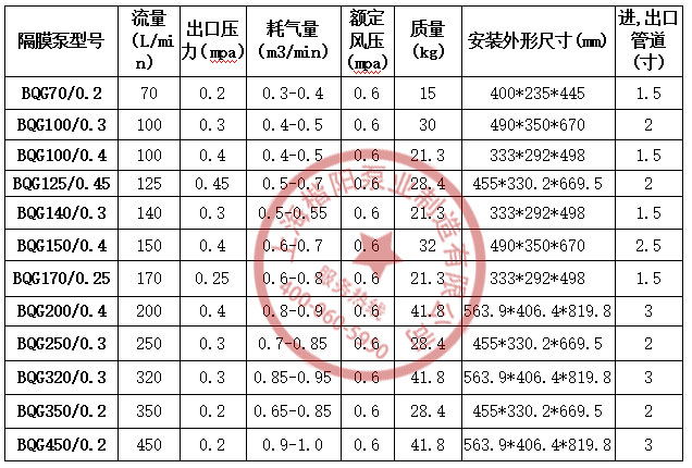 礦用BQG氣動(dòng)隔膜泵性能參數(shù)