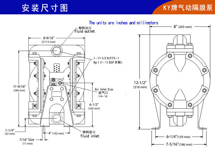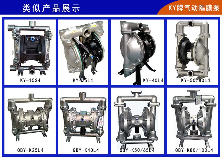 8、KY牌氣動雙隔膜泵整體構(gòu)造上更加優(yōu)化,泵腔和主管路都有明顯加強,自吸功能和流量揚程都有很大改善(最大流量/54立方/小時,最大揚程80米);被客戶成為超大流量氣動隔膜泵和壓濾機專用氣動隔膜泵。