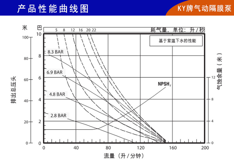 10、氣動雙隔膜泵不需灌引水,吸程高達5米(有引水的情況下,吸程可以達到7-9米),揚程達83米,出口壓力≧8bar