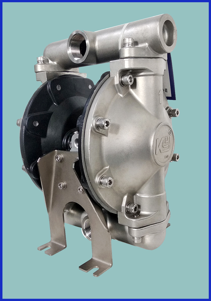 KY261-110/210不銹鋼氣動(dòng)隔膜泵,是上???yáng)泵業(yè)不斷吸取和學(xué)習(xí)進(jìn)口高端氣動(dòng)隔膜泵的經(jīng)驗(yàn)研發(fā)成功的最新型國(guó)產(chǎn)氣動(dòng)隔膜泵。在泵體和配氣裝置都有革命性的改進(jìn),具有無(wú)死點(diǎn)、效率高、流量大等特點(diǎn)。廣泛應(yīng)用于制藥、污水處理、食品、化工、汽車(chē)、涂料等行業(yè)。水泵的材質(zhì)、304不銹鋼、316L不銹鋼等,隔膜片選用山道橡膠配品牌特氟龍材質(zhì),密封座采用不銹鋼材質(zhì)。自吸能力干吸可以達(dá)到5米,濕吸8米,在工作壓力8公斤時(shí)還可以保證足夠流量輸出。