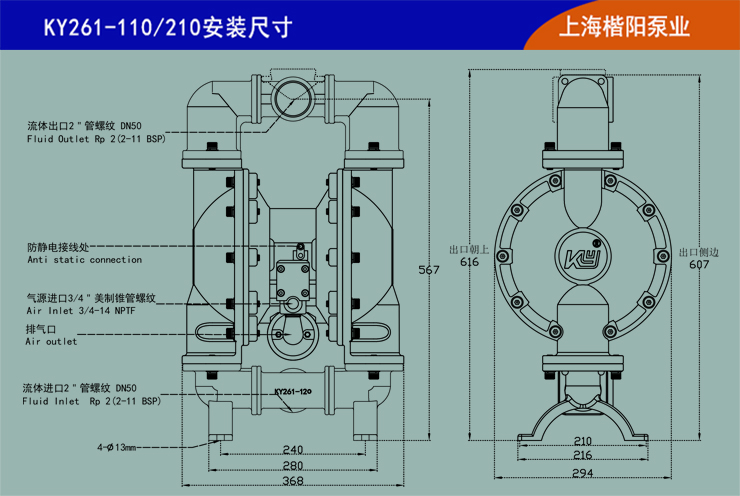 KY261-120不銹鋼304氣動隔膜泵和KY261-220不銹鋼316L氣動隔膜泵是上??柋脴I(yè)的高端產品之一,自吸能力和流量輸送能力極強:干吸可以達到5米垂直高度,濕吸8-10米垂直高度,在工作壓力8公斤時還可以保證足夠流量輸出。