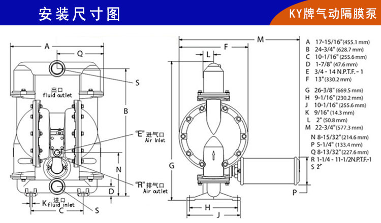 KY-50LP增強(qiáng)型不銹鋼氣動隔膜泵,是上??柋脴I(yè)不斷吸取和學(xué)習(xí)先進(jìn)氣動隔膜泵的經(jīng)驗研發(fā)成功的新一代氣動隔膜泵???04氣動隔膜泵在泵體和配氣裝置都有革命性的改進(jìn),具有無死點(diǎn)、效率高、流量大等特點(diǎn)???strong>新一代氣動隔膜泵廣泛應(yīng)用于制藥、污水處理、食品、化工、汽車、涂料等行業(yè)??枤鈩痈裟け玫牟馁|(zhì)有鑄鐵、鋁合金、不銹鋼304氣動隔膜泵,不銹鋼316L氣動隔膜泵等,隔膜片選用山道橡膠和特氟龍材質(zhì)。