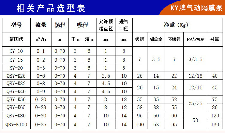 10、K型QBY氣動(dòng)隔膜泵不需灌引水,吸程高達(dá)7米,揚(yáng)程達(dá)60米,出口壓力≧6bar