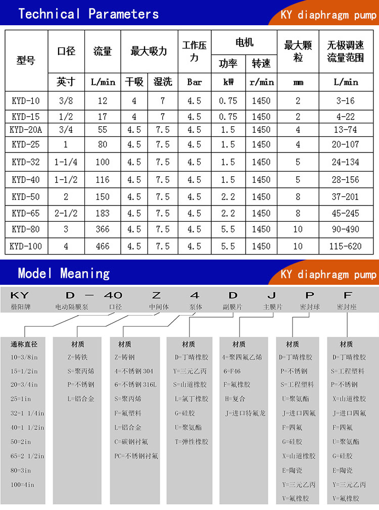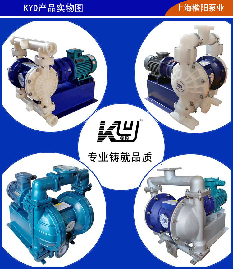 KYD型電動隔膜泵是一種采用BLY擺線針輪減速機(jī)傳動動力的往復(fù)泵,上??栯妱痈裟け脧S家經(jīng)過數(shù)十年的研發(fā)改進(jìn),生產(chǎn)出了具有國際水平的電動隔膜泵。其材質(zhì)也取得了突破性的進(jìn)展,上??栯妱痈裟け脧S家生產(chǎn)的KYD型電動隔膜泵主要材質(zhì)有304不銹鋼隔膜泵、316L不銹鋼隔膜泵、電動鑄鐵隔膜泵、電動鋁合金隔膜泵、工程塑料(增強(qiáng)聚丙烯)電動隔膜泵、氟塑料(聚偏氟乙烯)電動隔膜泵和耐腐蝕抗壓性能超強(qiáng)的鋼襯氟電動隔膜泵等。