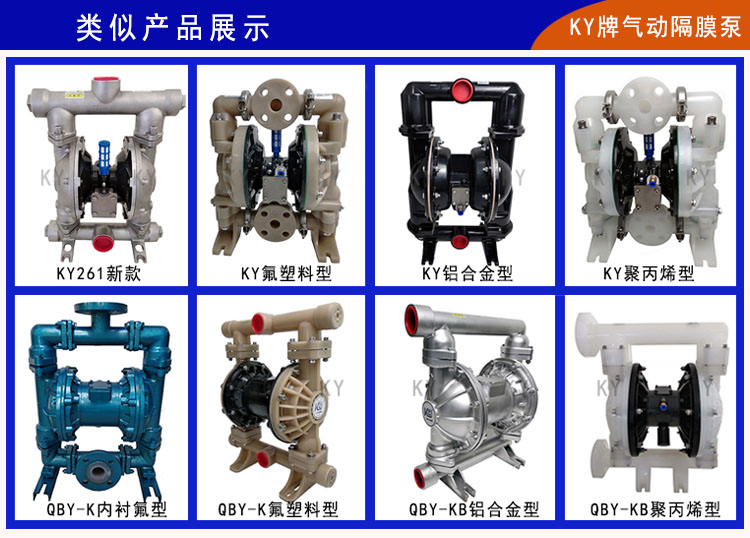 2、KY氣動隔膜泵整體構(gòu)造上更加優(yōu)化,泵腔和主管路都有明顯加強,自吸功能和流量揚程都有很大改善。