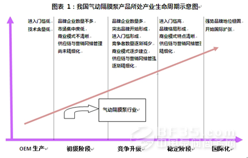 據(jù)預(yù)測,目前國內(nèi)隔膜泵市場保守需求量可達數(shù)十億元,國際市場需求量更大。但我國氣動隔膜泵產(chǎn)品目前仍處于產(chǎn)業(yè)生命周期的初級階段,品牌企業(yè)數(shù)量不多,市場集中度低,商業(yè)模式不清晰,供應(yīng)鏈與營銷網(wǎng)絡(luò)管理尚未精細(xì)化。