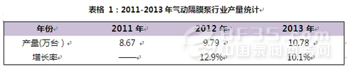 水泵行業(yè)是典型的投資拉動型產(chǎn)業(yè),市場需求受國家宏觀政策,特別是受水利、建筑、能源等行業(yè)的宏觀政策影響很大?!笆濉逼陂g我國泵設(shè)備制造業(yè)將保持20%左右的市場增長速度,到2015年的銷售規(guī)模將在1587億元左右。到近年來,我國氣動隔膜泵產(chǎn)量逐年上升,到2013年氣動隔膜泵的產(chǎn)量達10.78萬臺。隨著市場發(fā)展,行業(yè)發(fā)展前景廣闊,預(yù)計2018年,行業(yè)產(chǎn)量將達到18.09萬臺。