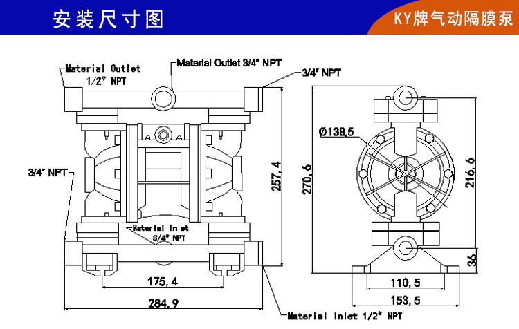 3、KY-20SS工程塑料氣動隔膜泵最大的特點是供氣壓力在0.2Mpa以上就可以正常啟動(老型QBY型塑料氣動隔膜泵供氣壓力需要0.5Mpa以上才可以正常運轉(zhuǎn)),不用再為氣動設備多導致氣壓不足而停機。