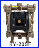 KY-20SS工程塑料氣動隔膜泵又叫做PP氣動隔膜泵,是上??柋脴I(yè)根據(jù)廣大客戶實際使用情況需求而研發(fā)生產(chǎn)的.由于它的獨特材質(zhì)注定了它的優(yōu)良特性:首先相對于金屬氣動隔膜泵而言它的重量可以減輕一半,極大的加強了隔膜泵的移動性能;工程塑料氣動隔膜泵對于含有金屬介質(zhì)液體的輸送沒有任何影響,并且對于一些酸性液體由更好的耐腐蝕性能,對于一些醫(yī)用單位、化工單位和金礦單位是一種絕佳的水泵選擇;
