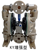 KY增強型不銹鋼氣動隔膜泵,是上??柋脴I(yè)不斷吸取和學習進口氣動隔膜泵的經(jīng)驗研發(fā)成功的最新型國產(chǎn)氣動隔膜泵。本系列泵在泵體和配氣裝置都有革命性的改進,具有無死點、效率高、流量大等特點。廣泛應用于制藥、污水處理、食品、化工、汽車、涂料等行業(yè)。水泵的材質(zhì)有鑄鐵、鋁合金、304不銹鋼等,隔膜片選用山道橡膠和特氟龍F46材質(zhì)。